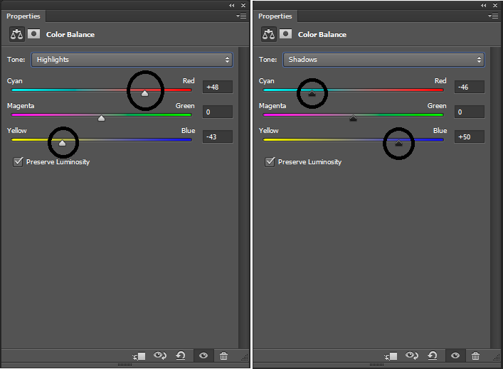 Figure 1 shows how a Color Balance Adjustment Layer in Photoshop was used in order to add a yellow-red tint to the highlights, and a blue-cyan tint to the shadows to obtain the Vintage look of the image shows in figure 2.