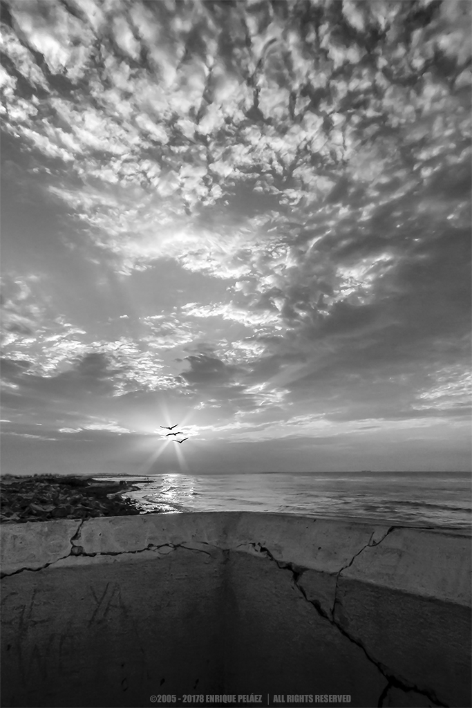 Take a look at the image in figure 3, is there any doubt what the subject is in this image? In my opinion, it shouldn’t be. The converging lines formed the walls in the foreground gently guide the viewer’s eye to the 3 pelicans flying near to the horizon line, in the same way the implied lines formed by the borders of the clouds in the sky guide the viewer’s eye to the same point.