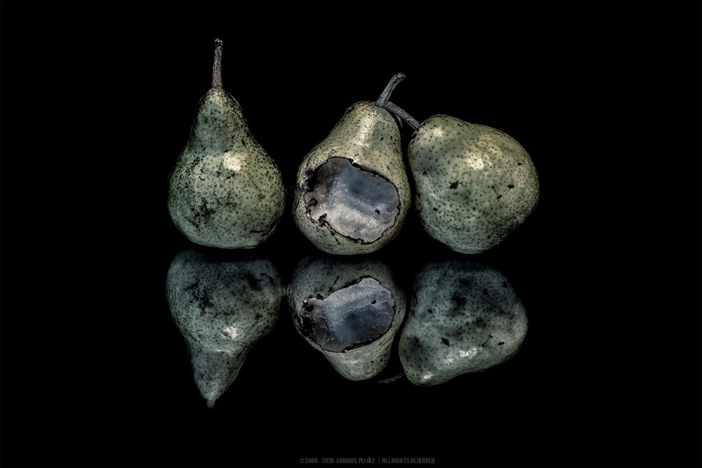 Let’s analyze some examples. Figure 1 shows an still life which is an obvious example of negative space. The black tone surrounding the subject is the low impact element that stands out the main subject — the three pears.